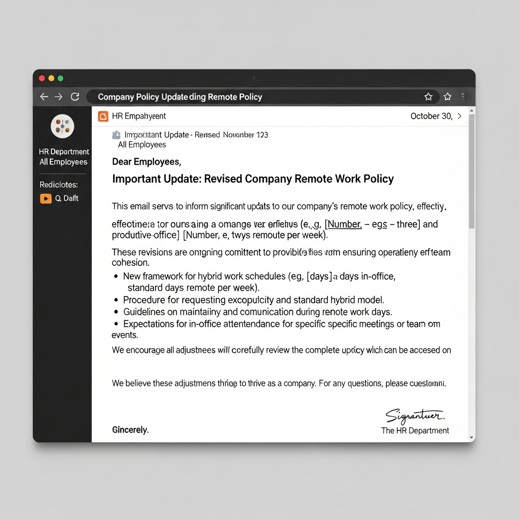 I remember early in my career, I was tasked with rolling out a major shift in our data-handling policy. We spent weeks perfecting the legal language in the document, but the accompanying email was an afterthought—a dry, one-paragraph summary. Naturally, the response was underwhelming. A week later, a critical data breach nearly occurred because several employees confessed they had archived the original email, assuming it was “just more HR noise.” This anecdote taught me a powerful lesson: The policy update is only as good as the communication that introduces it. You need a robust Company Policy Update Email Sample Example that employees actually read and understand, not one they instantly delete.